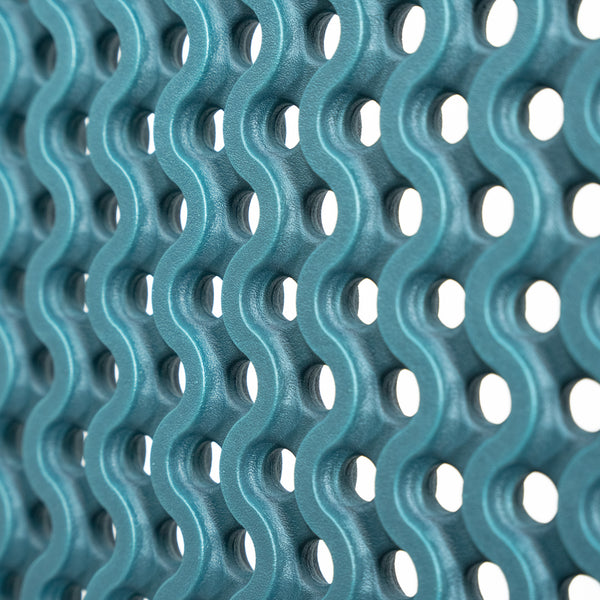 Does its part to address algae overgrowth problems. Each mat is made with 690g of algae biomass, returning 155 liters of fresh water to the habitat, and 97 cubic meters of air is returned to the atmosphere. Read more about materials here.
